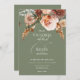 Boho Peach & Rust Floral Sage Green Wedding Invitation