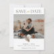 Boho-inspired photo save the dates for the modern couple in a simple text with flower graphic design. Upload your photo and customise with your names, wedding date and location. Mail to family and friends asking them to reserve your upcoming wedding date.
