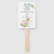 These fans were exactly as pictured. The quality is great. Perfect favor for a wedding!...I will make assembly a little easier by using a hot glue gun and finish them off with a ribbon. Beautifully printed. Crisp and clear text.