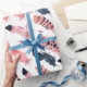 Lovely watercolor pattern features a collection of Boho style feathers in pinks and black