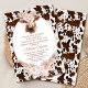 Sweet highland cow themed baby shower invitation in a boho style featuring a some boho floral arrangements in pail pink and brown, cowhide or cow print pattern and a highland cow image. This boho floral cow "have you heard the news" baby shower invitation is ideal for a bohemian or cow themed baby shower.