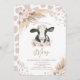 Boho Pink Floral Pampas Grass Cow Birthday Party Invitation