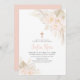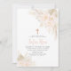 Pink boho florals with dried palms, pampas grass and a faux rose gold foil cross. A pretty and elegant Christening or Baptism invitation for your little girls special day.
