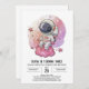 Boho Pink Whimsy Astronaut Birthday Invitation