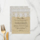 NOTE: this is a flat printed design, there are no raised lace, fabric or layered elements on this product. COLOR PALETTE: white, tan, burlap DESIGN COLLECTION: Matching Reception or Bridal Shower Dinner Menu with entree choices. This is a modern BOHO or Bohemian Style, gypsy inspired, trendy chic stylish look. It has a simple, clean yet lovely beauty. Created from vintage Victorian or Edwardian era swirl baroque deep drop leaf lace pattern and tear drop design ornaments that have been graphically hand transformed into an elegant beautiful, sophisticated lace trim border. The laces are laid on top of a tea stained burlap textured background pattern. A complete wedding invitation set is available to match. The reverse side has the tear drop, diamond swirl point lace pattern in a full repeat pattern.