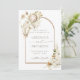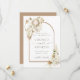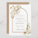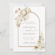 This wedding save the date invitation features painted watercolor protea, white orchids, dry pampas grass, white anthuriums, wildflowers, exotic leaves with an arch frame and a photo on the back. For more advanced customisation of this design, please click the "Customise further" link. Matching items are also available.