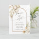 This wedding save the date invitation features painted watercolor protea, white orchids, dry pampas grass, white anthuriums, wildflowers, exotic leaves with an arch frame and a photo on the back. For more advanced customisation of this design, please click the "Customise further" link. Matching items are also available.
