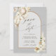 This wedding save the date invitation features painted watercolor protea, white orchids, dry pampas grass, white anthuriums, wildflowers, exotic leaves with an arch frame and a photo on the back. For more advanced customisation of this design, please click the "Customise further" link. Matching items are also available.