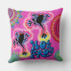 Boho psychedelic hot frog throw cushion cerise