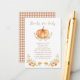 This boho baby enclosure card features a watercolor pumpkin, fall foliage, and an orange brown plaid pattern on the back.
