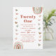 Boho Rainbow Modern 21st Birthday Party Invitations features your modern twenty first birthday party invitation information in a terracotta boho rainbow and heart frame and your favourite photo on the reverse. Perfect to invite family and friends to your celebration. Easy DIY (Do It Yourself) by editing the text in the text boxes provided. Designed by ©Evco Studio www.zazzle.com/store/evcostudio
