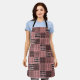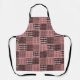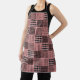This apron has a Boho design of squares with patterns in each in black and pink.