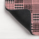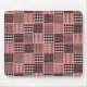 This mouse pad has a Boho design of squares with patterns in each in black and pink.