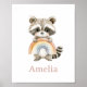 Boho Racoon And Rainbow Baby Name Nursery Art Poster