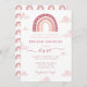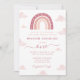 Boho Rainbow and Clouds Pastel Pink Birthday Invitation