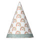 Top off your celebration with this adorable boho rainbow party hat! Featuring a soft watercolor rainbow design in earthy terracotta and blush tones, this hat is perfect for first birthdays, baby showers, or modern boho-themed parties. A fun photo prop and festive detail for your little one's special day.