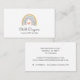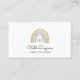 A cute whimsical boho style watercolor rainbow childcare business card. Cute and whimsical style.