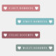 Boho Rainbow Pink Blue Green Kids Waterproof Name Labels with heart silhouettes on each end. Personalised Name Label Stickers in pink, blue and green.