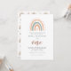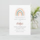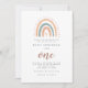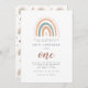 A modern and chic first birthday invitation with cute rainbow design in pastel colour for a boho theme.