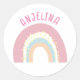 Boho rainbow pink kids name sticker