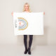 Trendy boho watercolor rainbow personalised sherpa blanket with little pink heart in the middle.