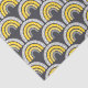 This cute and whimsical tissue paper features a yellow and grey bohemian rainbow on a dark grey background.