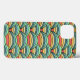 This phone case has a boho design of overlapping rainbows in boho colours of blue, green, yellow, and red.