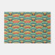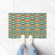 This doormat has a boho design of overlapping rainbows in boho colours of blue, green, yellow, and red.