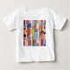 This baby t-shirt has a boho modern design of rectangles attached to vertical lines in various sizes and retro colours.