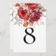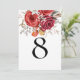 Boho Red Autumn Florals Table Number