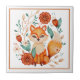 Boho Red Fox with Flowers and Leaves Ceramic Tile