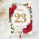 Personalise this elegant 5"x7" red floral table number sign easily and quickly. Simply click the customise it further button to edit the texts, change fonts and fonts colours. Featuring vibrant red peony flowers, a princess crown and gold and red butterflies. Perfect for Quinceañera, Sweet 16, 18th birthday, debutante ball, bridal shower, birthday party and more occasions.