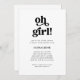 This simple and boho black and white baby shower invitation for a baby girl features retro typography that says "oh girl."