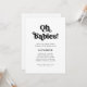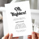 This simple and boho black and white baby shower invitation for twins, triplets, or multiples features retro typography that says "oh babies" on a gender neutral background.
