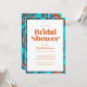 Boho Retro Blue Teal Typography Wavy Bridal Shower Invitation