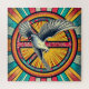 Dove and peace sign done in a boho retro style. Red, blue and yellow vintage earthy colours.