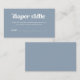 These simple and boho baby shower diaper raffle enclosure cards feature white, retro typography on a dusty blue background.