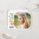 This multi-coloured photo graduation party invitation features a retro theme featuring boho colours. The square photo is accented with rounded corners. The backside offers custom text for you to add your party invitation details.