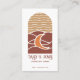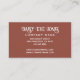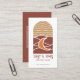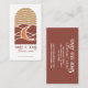 Boho 70's style orange sunrise and mountains business card with retro flourished typography. A 60's and 70's style vibe. Add your name, company, and city. The back of the card is solid orange with white type.