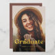 This is a retro and minimalistic university/college graduation announcement using a bold retro font in real gold pressed foil along with a single minimalistic photo. The reverse side includes a message that you can personalise, along with another photo. This design applies a filter to your photo, to modify or remove this filter press the blue edit design button and access the filter settings. Please contact the designer for any queries related to this design.