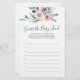 Boho rose themed baby shower guess the baby food game card features a watercolor pink rose illustration and watercolor greenery eucalyptus garland and elegant handwritten style font.