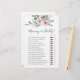 Boho rose themed baby shower mummy or daddy game card features a watercolor pink rose illustration and watercolor greenery eucalyptus garland and elegant handwritten style font.