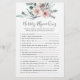 Boho rose themed baby shower nursery rhyme quiz game card features a watercolor pink rose illustration and watercolor greenery eucalyptus garland and elegant handwritten style font.