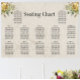 This wedding seating chart is perfect for couples who want to add a touch of bohemian flair to their special day. The chart features a pair of shabby chic style, gold rose bouquets in the top corners, which add a touch of elegance to the design. The chart is set on a background of faded damask wallpaper, which gives it a rustic feel. All names and table numbers on the chart can be personalised, making it a unique and special addition to any wedding.