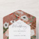 AVAILABLE WITH OR WITHOUT A QR CODE OR WITH OR WITHOUT DINNER SELECTION OPTIONS. This design features bouquet of burgundy marsala, pink blush, and white flowers on a soft rust clay background that has been distressed with champagne gold. Add a QR code to your invitation so that gusts can quickly access your wedding Website for details, directions, menu options, and more, or add your gift registry Web URL. Personalised All-In-One invitations are a unique combination of both a beautifully printed custom invitation with an easy to tear off perforated RSVP postcard. And they are so easy to use! You simply fold, then seal the back flap with the three included clear stickers, and mail. And when your guests receive your custom invite, they just tear the perforated RSVP Card off and drop it back in the mail to you!