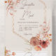 ALSO AVAILABLE WITH A QR CODE TO SCAN IN THE RSVP AREA OR WITHOUT DINNER SELECTION OPTIONS. This design features a burnt orange rust, peach, brown and cream watercolor fall boho floral corner bouquet geometric frame on an off white cream background. Personalised All-In-One invitations are a unique combination of both a beautifully printed custom invitation with an easy to tear off perforated RSVP postcard. And they are so easy to use! You simply fold, then seal the back flap with the three included clear stickers, and mail. And when your guests receive your custom invite, they just tear the perforated RSVP Card off and drop it back in the mail to you!