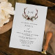 This chic rustic wedding invitation with antlers features the monogram initials of the bride and groom framed by stag antlers which are decorated with a watercolor burgundy floral bouquet. Please contact me through Zazzle Chat if you need design tweaks, more matching products, or other colorways.