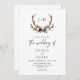 This chic rustic wedding invitation with antlers features the monogram initials of the bride and groom framed by stag antlers which are decorated with a watercolor burgundy floral bouquet. Please contact me through Zazzle Chat if you need design tweaks, more matching products, or other colorways.