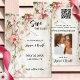 Boho chic wedding Save the Date card featuring loosely painted pink flowers on a rustic ivory background. On the back is the option to add your photo as well as an easy to customise QR code template.