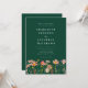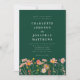 Boho chic floral Fall green wedding invitation with watercolor Wildflower Meadow hand painted flowers. This elegant terracotta dark green Wedding Invitation with RSVP wedding website QR code, a stunning blend of autumnal charm and elegant sophistication. This watercolor design showcases hand-painted wildflowers in a vibrant garden meadow, with a rich palette of burnt orange, terracotta, brown, purple, yellow, coral, burnt umber, peach, and soft pink, capturing the warmth and beauty of the fall season on an emerald dark green background.